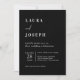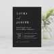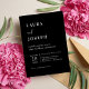 Capture the essence of modern elegance with our black simple modern minimalist wedding invitation. Ideal for contemporary weddings, this sleek design suits a variety of events, including sophisticated evening ceremonies, stylish city celebrations, and chic destination weddings. The timeless black colour paired with a minimalist layout creates a refined invitation perfect for couples seeking a clean, modern aesthetic. Whether you're hosting a black-tie affair or an intimate gathering, this customisable invitation sets the stage for a memorable and stylish celebration.
