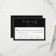 Welcome to our Black Modern Script Wedding RSVP Card design, where modern minimalism meets the artistry of calligraphy. This curated aesthetic brings an air of sophistication to your special day- with a twist of boho, casual charm. The combination of simple typography with a stylish script font adds a unique personality to your wedding. This classic design offers a timeless, polished look that's perfect for spring, summer, fall, or winter weddings. A simple understated palette of black backdrops and white text creates the perfect neutral backdrop for your celebration. Make your wedding truly elegant with our lovely Modern Script collection. As with all of our designs, if you have any questions or special requests, please just ask.