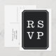 Modern and chic Simply Elegant Wedding Response Postcard with a sleek black ticket emblem design. This classic and stylish design is easy to customise with your wedding details. For more customisation options, click Customise.