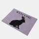 This outdoor welcome door mat has a black sitting rabbit silhouette on a pretty light purple with a marbled pattern. Customise the Welcome text with the template.