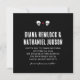 Two skulls share the look of love on this goth style wedding invitation. If you're a witch, wizard, pirate, goth, or just a person of the night unafraid of decay, this invitation is for you. Textural fonts and a simple and clean layout make the couple the focus.