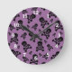 Black skulls on a purple background, with white numbers. This fun wall clock would be great in a teen bedroom or other fun space! Available on two sizes of round clock, or a square clock. Copyright Scarebaby Design.