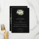 A black, three course wedding menu, featuring a bouquet/posy of hand painted snowberries and eucalyptus on the front and a wreath on the back. All text is fully editable, and the scattered dots on the front and back can be deleted before ordering if you would prefer. Please view this Collection in my store for menu’s with alternative floral arrangements, a different number of courses and in different sizes/colours/shapes. Coordinating items also available.