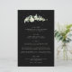 A black, four course wedding menu, featuring a stem of hand painted snowberries and eucalyptus on the front and a wreath on the back. All text is fully editable, and the scattered dots on the front and back can be deleted before ordering if you would prefer. Please view this Collection in my store for menu’s with alternative floral arrangements, a different number of courses and in different sizes/colours/shapes. Coordinating items also available.