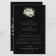 A black, four course wedding menu, featuring a bouquet/posy of hand painted snowberries and eucalyptus on the front and a wreath on the back. All text is fully editable, and the scattered dots on the front and back can be deleted before ordering if you would prefer. Please view this Collection in my store for menu’s with alternative floral arrangements, a different number of courses and in different sizes/colours/shapes. Coordinating items also available.