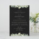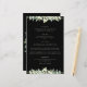 A black, four course wedding menu, featuring an edging of hand painted snowberries and eucalyptus on the front and a wreath on the back. All text is fully editable, and the scattered dots on the front and back can be deleted before ordering if you would prefer. Please view this Collection in my store for menu’s with alternative floral arrangements, a different number of courses and in different sizes/colours/shapes. Coordinating items also available.