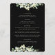 A black, four course wedding menu, featuring an edging of hand painted snowberries and eucalyptus on the front and a wreath on the back. All text is fully editable, and the scattered dots on the front and back can be deleted before ordering if you would prefer. Please view this Collection in my store for menu’s with alternative floral arrangements, a different number of courses and in different sizes/colours/shapes. Coordinating items also available.
