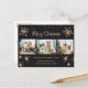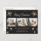 Black photo Merry Christmas and Happy New Year postcard featuring a photo collage with stars, snowflakes and a beautiful hand-lettered holiday greeting in a festive script font. Easily personalise this black holiday postcard with your photos, family name and text. The background can be customised to any colour.