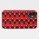 This phone case has a mid-century modern design of black ovals with white circles connected by white lines on a field of red. Want different colours? Message me.