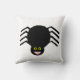 This awesome pillow features a spooky black spider with eight hairy legs, yellow eyes with big black pupils and its mouth open showing its fangs.