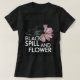 "A bold black spill design collides with a delicate flower, creating a visually striking t-shirt. This design represents the balance between darkness and light, chaos and beauty, existing within us all."