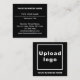 Black square business card for your customers or clients to easily find your business address and contact information. The front side contains plain text information and the back side contains your business name and logo. Customise it by typing your business name, your name, your title, address, phone number, e-mail, website or social media page and uploading your business logo. Square business card that you can also use to build brand name awareness. Please check the appearance of the front and back sides after typing texts and uploading logo. If the appearance is pleasing to you, you can place your order now. If you need to resize or reposition the texts and logo, please adjust in the design tool. You can also change the background colour, font colour and font style in the design tool.