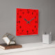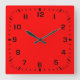 Clock with a black square clock face on a red background. Customisable. Modern and trendy, yet classic, this clock is perfect for any decor.