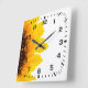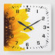 Black Square Numbers / Yellow and Brown Sunflower Wall Clock