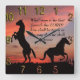 Gold Christian Faith Featuring a breath taking view of two Black Stallone silhouette.With the orange sun set above them one horse is up on his hind legs.with the text
