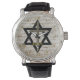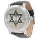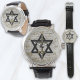 Black Star of David with brown cross and gold roman numeral numbers. Template name created for you. White brick background.