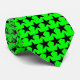 A cool necktie featuring straight rows and columns of black stars on a neon green background. The perfect tie for a party or celebration.