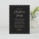 Minimalist black Christmas party invitation showcasing a simple star frame. Easily personalise this black invitation with your party details.