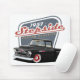 This is a rendering of an American classic street rod truck with vintage graphics in the background.