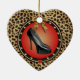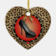 The perfect ornament for any shoe lover! This beautiful and stylish double sided ceramic heart ornament features a black stiletto pump shoe on an cheetah animal print border. There are also lovely accents of golden trim and hearts and a golden bow too! Perfect give for your favourite shoe lover! This ornament is available with a personalised back side also in our shop too! Other shoe styles and colours are also available!