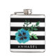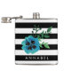 Tote your favourite libation in style! Flask features chic black and white stripes and a blue watercolor pansy flower. Customise with a monogram, name or text of your choice! Great gift for bridesmaids.