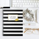 This gorgeous notebook features bold black and white stripes with a gleaming peony flower in faux gold effect. Coordinates with our Black Stripe & Gold Peony office accessories, paper products, and accessories. Customise with a monogram, name or text of your choice!