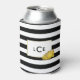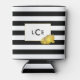 Black Stripe & Gold Peony Monogram Can Cooler