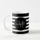 Black Stripe Monogram Circle Script Modern Elegant Coffee Mug