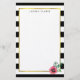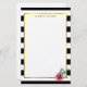 Lovely stationery features chic black and white stripes with a pretty watercolor pansy flower and faux gold accents. Customise with a monogram, name or text of your choice!