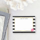 These handy notes feature a bold black and white stripe background, faux gold border, and a watercolor peony flower illustration in vibrant pink. Customise with a monogram, name or text of your choice in modern black lettering.