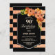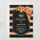 Black Striped Orange Floral 90th Birthday Party Invitation