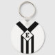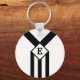 Black Stripes and Chevrons with Monogram on White Key Ring