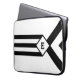 Three alternating black and white chevrons descend from the top of the geometric pattern and end at a diamond. It looks like a stylised medal hanging from a ribbon. The diamond contains a customisable monogram. Three black stripes extend from the bottom of the diamond to the base of the vertical design.