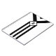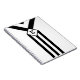 Three alternating black and white chevrons descend from the top of the geometric pattern and end at a diamond. It looks like a stylised medal hanging from a ribbon. The diamond contains a customisable monogram. Three black stripes extend from the bottom of the diamond to the base of the vertical design.