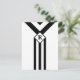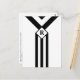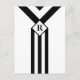 Three alternating black and white chevrons descend from the top of the geometric pattern and end at a diamond. It looks like a stylised medal hanging from a ribbon. The diamond contains a customisable monogram. Three black stripes extend from the bottom of the diamond to the base of the vertical design.