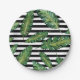 Black stripes banana leaf tropical summer pattern paper plate