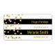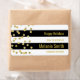 Custom name holiday from the kitchen of stickers in black and white stripes pattern with gold confetti. Perfect for labelling Christmas baked goods, canned preserves, and many other goodies from the kitchen, the perfect treat for the baker in your life.