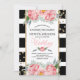 Black Stripes Gold Confetti Pink Floral Wedding Invitation