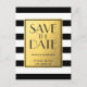 Black Stripes Save The Date Post Card with Gold Foil Frame. You can change the font style, colour, size, move it etc. by clicking the CUSTOMIZE IT button. Please contact me if you need help with customisation (colours, fonts, background, etc.).