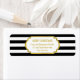 Christmas return address labels with black and white stripes pattern and gold details.