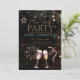 Hope you find this invitation with a beautiful background with champagne glasses, fireworks, and cute characters on the back of the card, cat and mouse covering their eyes cute and funny.