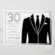 Black Suit & Tie 30th Birthday Party Silver Foil Invitation