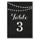 Cute, trendy black chalkboard summer string light wedding table numbers. These table numbers work well for rustic weddings! Check out the matching wedding invitations, save the dates, thank you cards and more! To change the font style and colour, click on the "Customise It" button below the product image for more personalisation options.