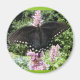 An unusually relaxed black swallowtail butterfly enjoying agastache flower nectar.