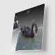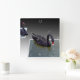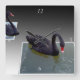 Swan, Clock, Featured on black background are two black Swans swimming in a dimensional pool of water,