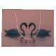 Awesome photograph of two swans swimming head to head creating the illusion of a heart on the water. They are on an early morning misty lake together,