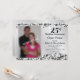 This 25th Wedding Anniversary invitation features a black swirl damask pattern as the background, a wavy silver stripe across the centre and a customisable photo frame. Customisable text allows you to add your invitation details.