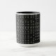 Beautiful synthesizer knobs are everywhere on this black face mug.
