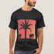 This black T-shirt is designed with my depiction of two elephants, and a palm tree silhouetted against an orange sunset.