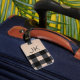 Pack your bags in style with this rustic black and tan buffalo plaid bag tag. Customise the front with your initials or monogram, and have your location details permanently printed on the back of the tag for easy location of lost luggage.